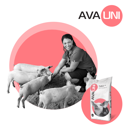 Продукція лінійки AVA UNI забезпечує інтенсивний ріст на всіх етапах відгодівлі свиней та дає можливість досягнути 110 кг живої маси за 6 місяців. Рецептура AVA UNI розроблена на основі європейських стандартів інтенсивної годівлі для домашніх ферм.