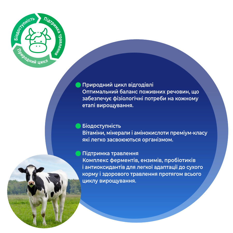 Гранульований концентрат для годівлі телят віком від 5-го дня та до 3-4 місячного віку