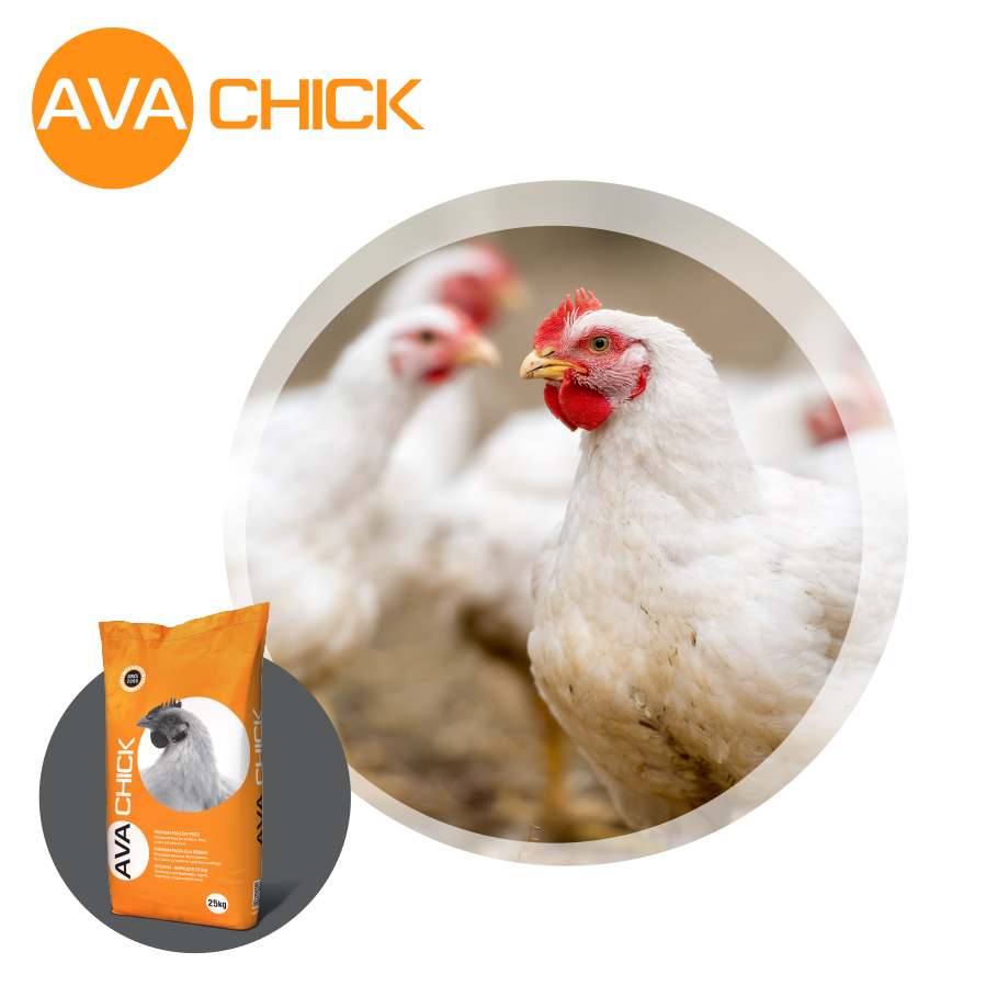 Лінійка продуктів AVA CHICK була розроблена провідними нутриціоністами згідно усіх вимог до нормування годівлі птиці. Для приготування кормів та кормових добавок використовуються якісні європейські складові, котрі допомагають розкрити продуктивний генетичний потенціал птиці та забезпечити високі показники ефективності вирощування курчат-бройлерів на кожному етапі годівлі