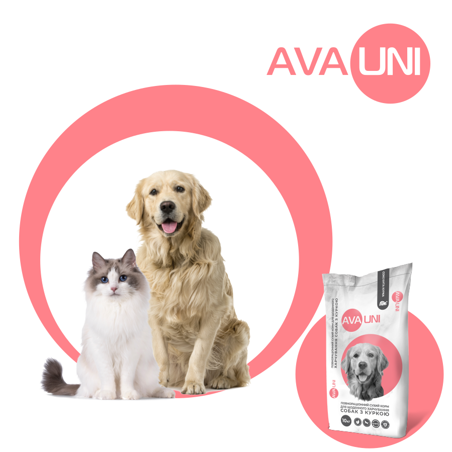 Лінійка кормів AVA UNI для харчування котів та собак має сучасну рецептуру та високу поживність кормів, що забезпечують відмінний результат харчування домашніх тварин, яка відповідає європейським стандартам.